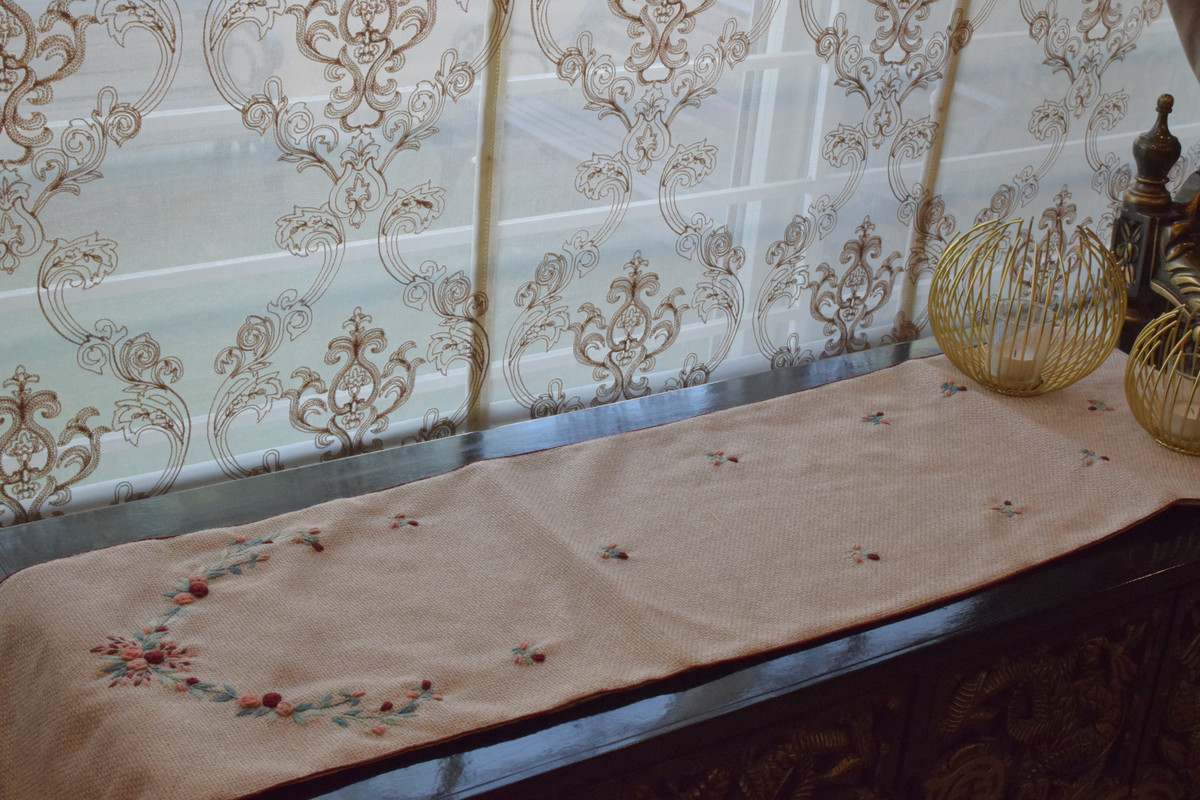 Embrace Timeless Elegance with Beige Jacquard Runner and Tissue Cover Set.  Introducing a touch of sophistication to your room decor, Beige Jacquard Runner and Tissue Cover Set promises to elevate your living experience. Immerse yourself in the timeless beauty of Beige Jacquard, meticulously crafted for those who appreciate the finer things in life.  Chic Simplicity: The minimalist yet chic design of this set ensures it seamlessly integrates into various living styles, adding a touch of understated elegance. Complete Ensemble: Unbox a full living transformation with a meticulously crafted runner and a stylish tissue box cover, creating a cohesive and refined look.  Premium Materials: Crafted from high-quality Beige Jacquard, this set boasts durability and style. The tissue cover adds a functional and stylish element to your room space.